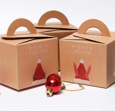 रीसाइक्लिंग ब्राउन क्राफ्ट क्रिसमस पेपर बॉक्स हैंडल के साथ उपहार पैकेजिंग बॉक्स