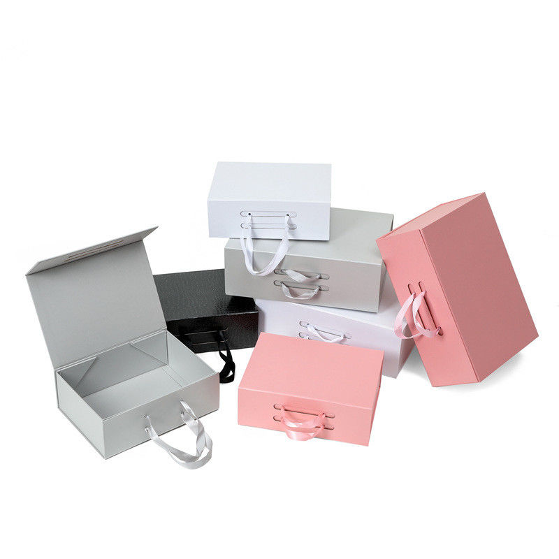 सिल्क रिबन के साथ कस्टम पेपर फोल्डेबल फोल्डेबल चुंबकीय उपहार बॉक्स