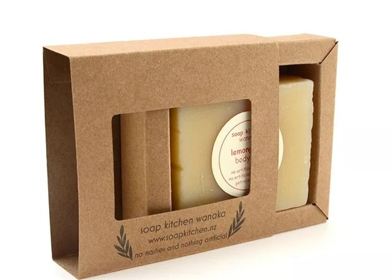 Custom Brown Kraft Paper Handmade Soap Box With Transparent Window